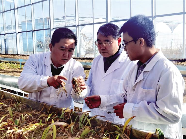 兰州百合优质种源高效开发关键技术“揭榜挂帅”项目承担方查看百合生长情况