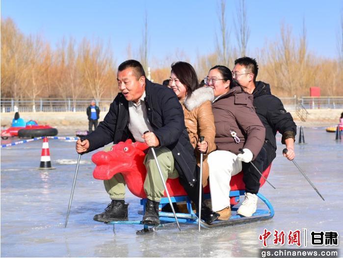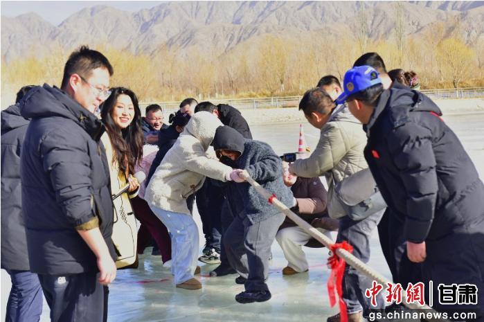 近日,肃北县举办“2026年雪域欢腾 冰趣飞扬”冰雪趣味活动。活动现场氛围热烈,居民齐聚冰湖,共同沉浸于欢乐的冰雪世界。活动现场,冰上拔河、冰车接力赛、冰上龙舟赛、冰上双人自行车速度赛、双人龙舟速度赛、冰上保龄球、冰上障碍赛等项目竞相开展。(张娅妮 陈天良)