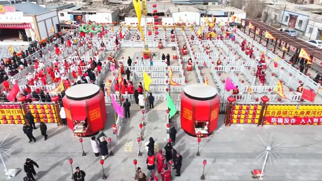 农历腊月二十二,高台县黑泉镇镇江村非物质文化遗产传承基地内华灯齐放、人潮涌动。省级非遗项目“九曲黄河灯阵”隆重启灯,以流光溢彩的传统仪式,迎接新春的到来。