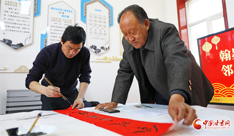 眼下,民乐县南街社区开展“迎新春、写春联、送祝福”活动,书法爱好者们免费为群众书写春联,迎春纳福,用笔墨传递温暖与祝福。