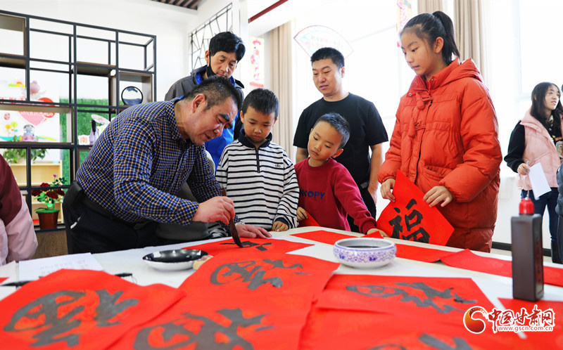 春节临近,民乐县组织群众文化志愿者服务队开展“翰墨迎春”公益文化活动,志愿者现场挥毫泼墨书写春联,为群众书写春联和“福”字,让群众在家门口享受“文化大餐”,迎接新春佳节的到来。