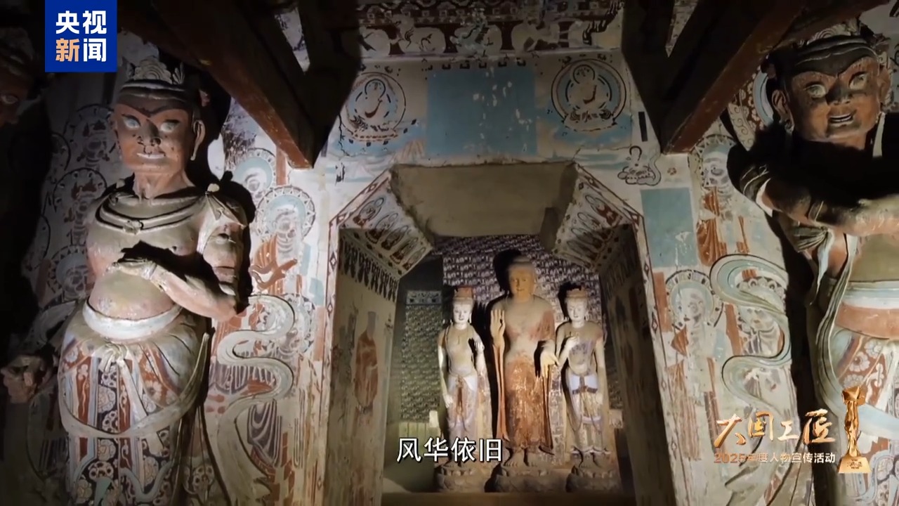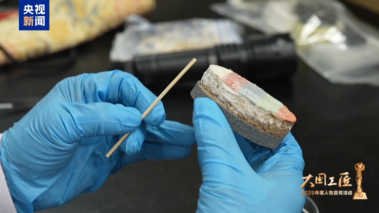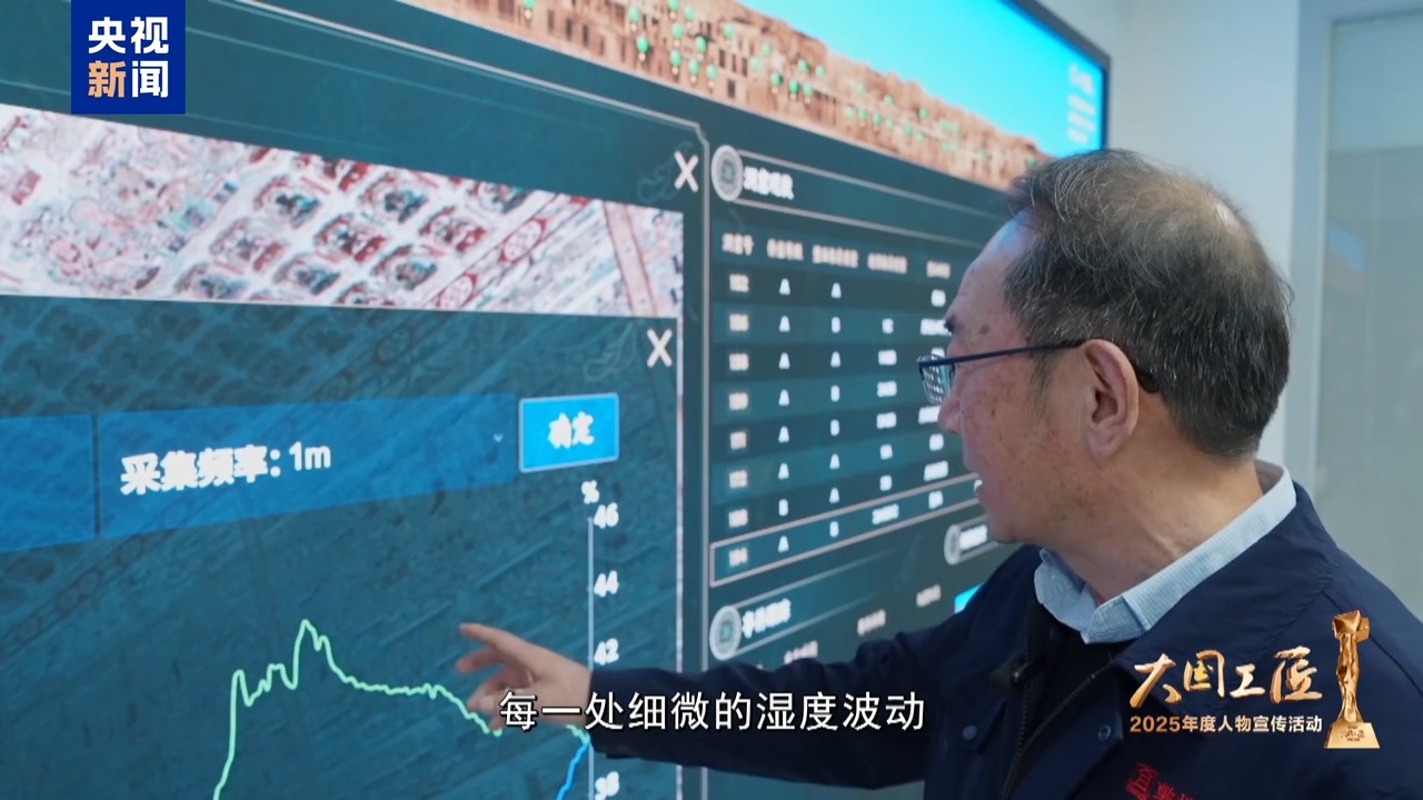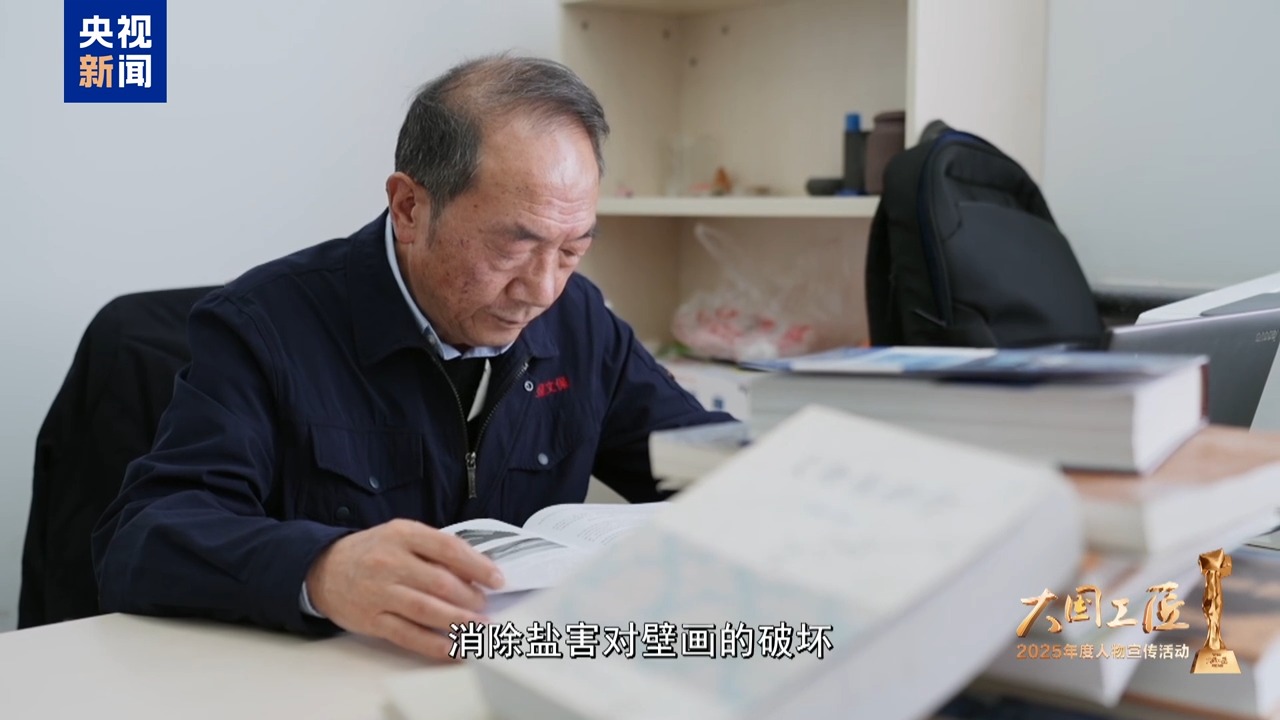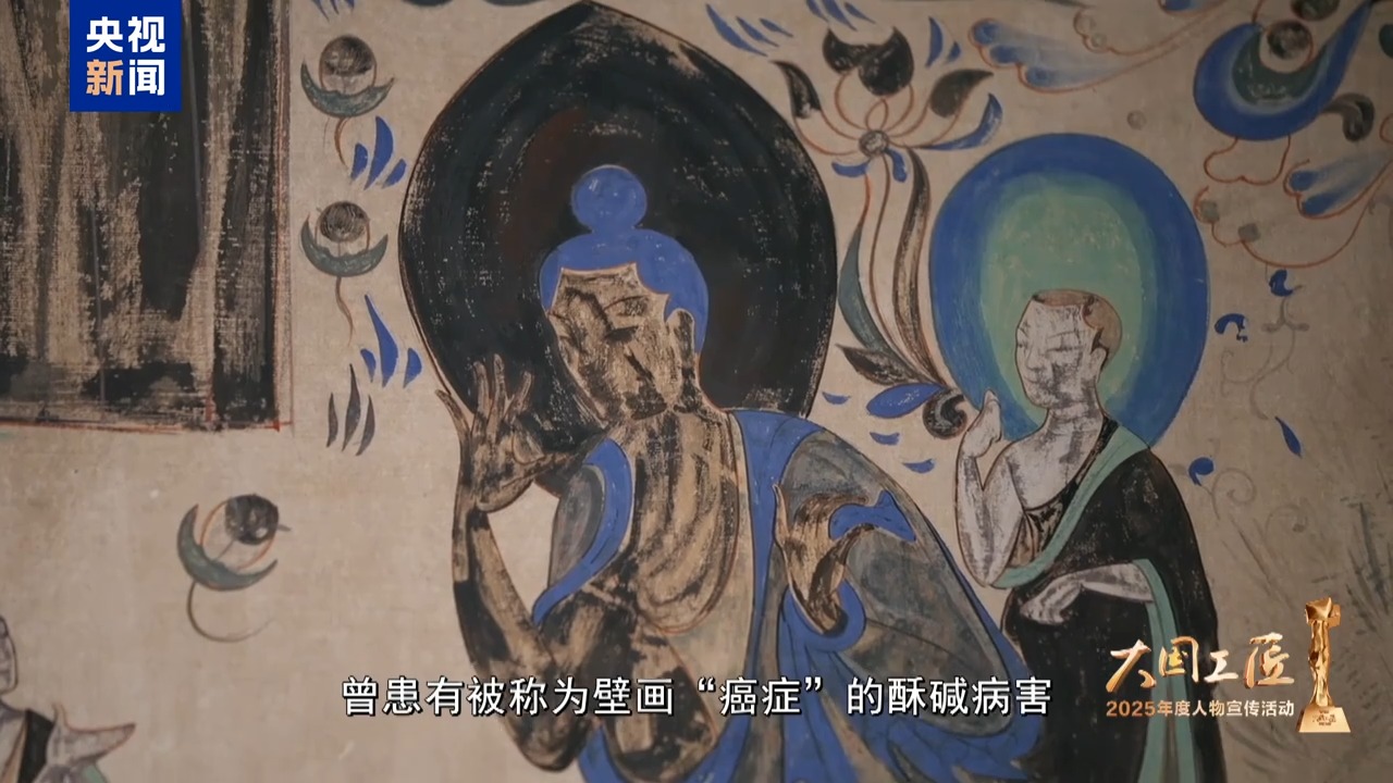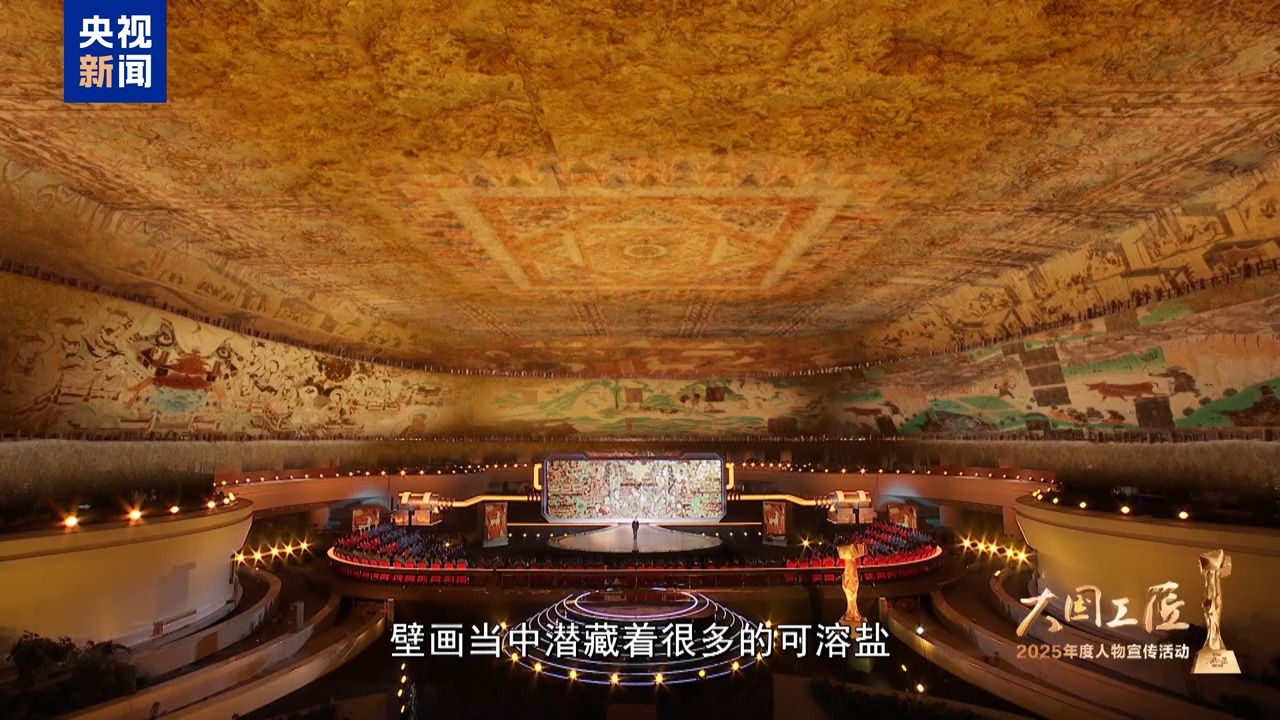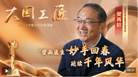 2025年大国工匠年度人物、敦煌研究院壁画保护修复专家 樊再轩:这里,是我守护一生的地方——敦煌莫高窟,它是大漠深处矗立千年的文明圣殿。45年前,我开始修复敦煌壁画,总感觉是在和古代的画工们进行着跨越时空的交流。这些壁画,它是会呼吸的,它是有生命的。然而,壁画当中潜藏着很多的可溶盐,在洞窟里受到温湿度的影响,反复地潮解、结晶,导致壁画膨胀、收缩。就像一双双无形的手,在一点一点撕裂着壁画的肌肤,这就是壁画“癌症”。我暗下决心:要让这千年瑰宝在时光的长河里留存得久一点,更久一点。