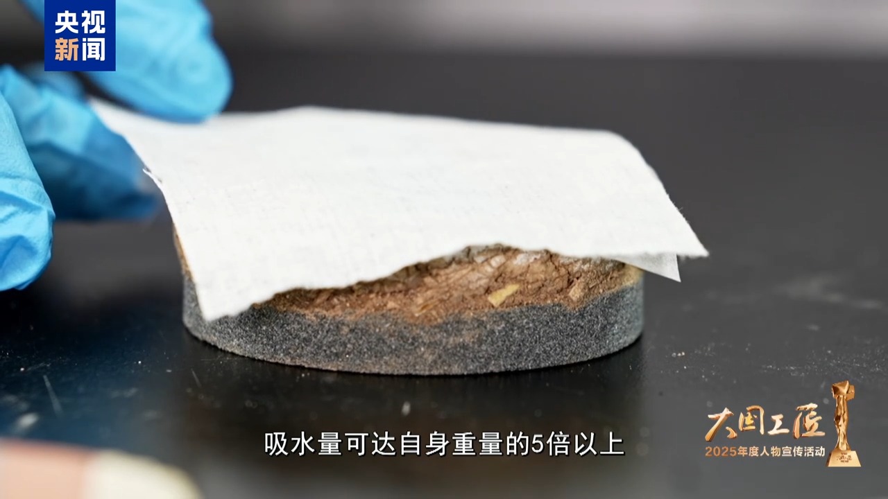 反复探寻,樊再轩和团队终于锁定了一种最优材料,吸水量可达自身重量的5倍以上,持水性能优异,并且不会对珍贵壁画造成损伤。