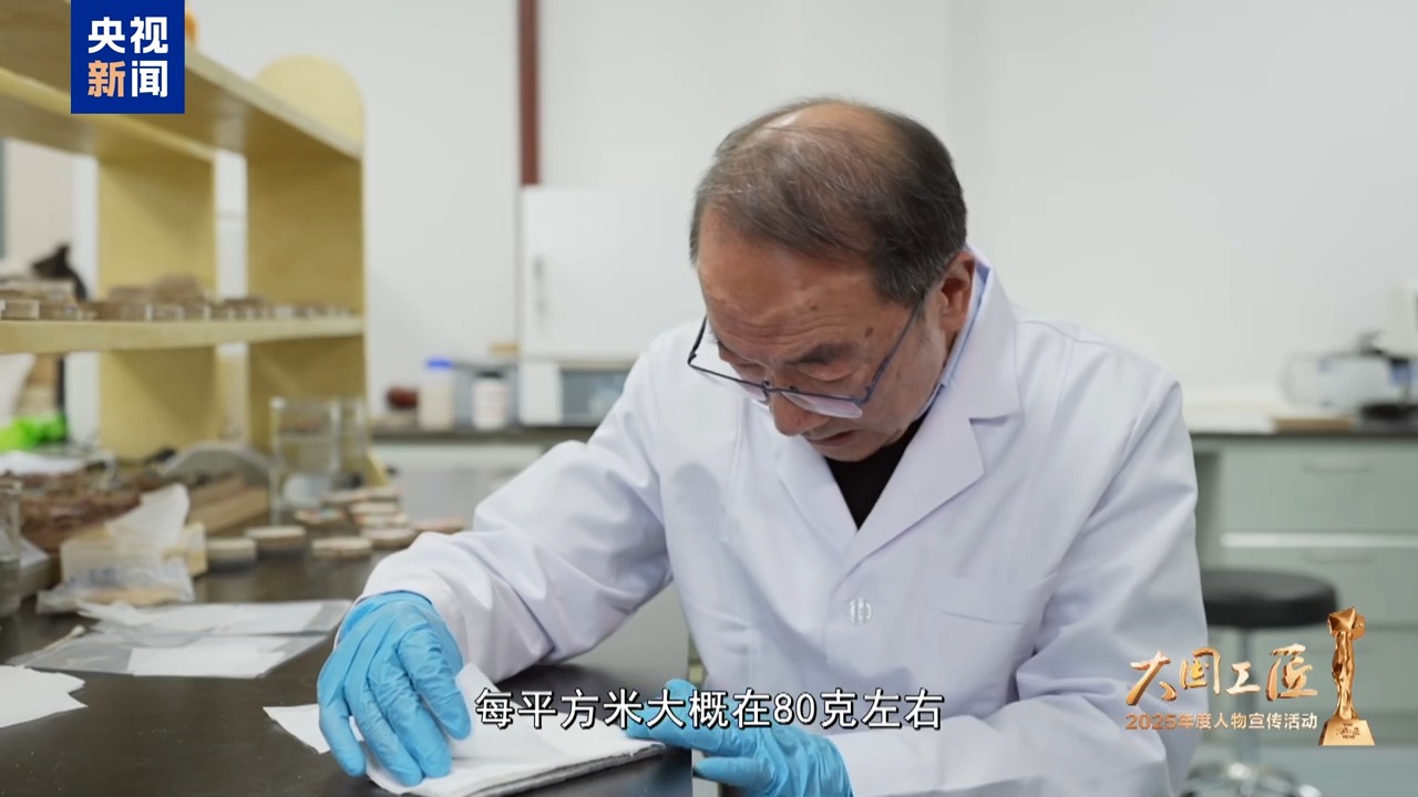 敦煌研究院 樊再轩:那段时间就看什么都像脱盐材料,想起来就试,后来有时候会想:面粉也行吧?面粉不行,面粉有黏结力。突然想到那个白口布、棉布、线手套也可以用……想起来我们就试、想起来我们就试。