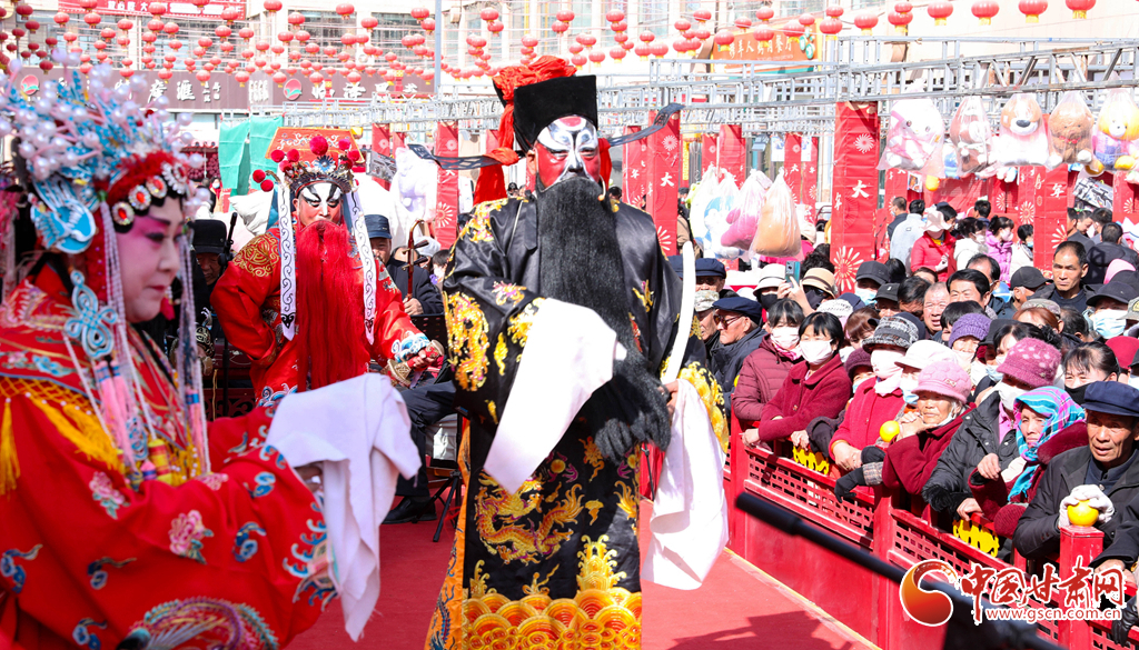 3月3日,农历正月十五元宵节,张掖市临泽县众多群众与游客开展舞祥龙、敲太平鼓、表演“惊牛”戏、吼秦腔、品元宵、制作花灯等丰富多彩的民俗活动,欢庆佳节。