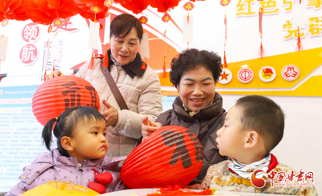 3月3日,张掖市临泽县颐和社区新兴领域党群服务中心,群众制作花灯欢庆元宵佳节。
