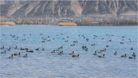 近日,随着天气转暖,大批白骨顶鸡重返定西湖。它们或在碧波中悠然游弋,或振翅追逐嬉戏,为春日的湖面增添了无限生机,成为一道灵动的生态风景线。