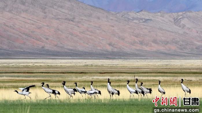 近五年来,保护区记录的野生动物越来越多,生物多样性也越来越丰富。图为肃北县记录到的黑颈鹤。(资料图)酒泉市融媒体中心供图
