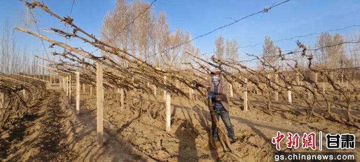 敦煌万亩葡萄枝蔓出土上架