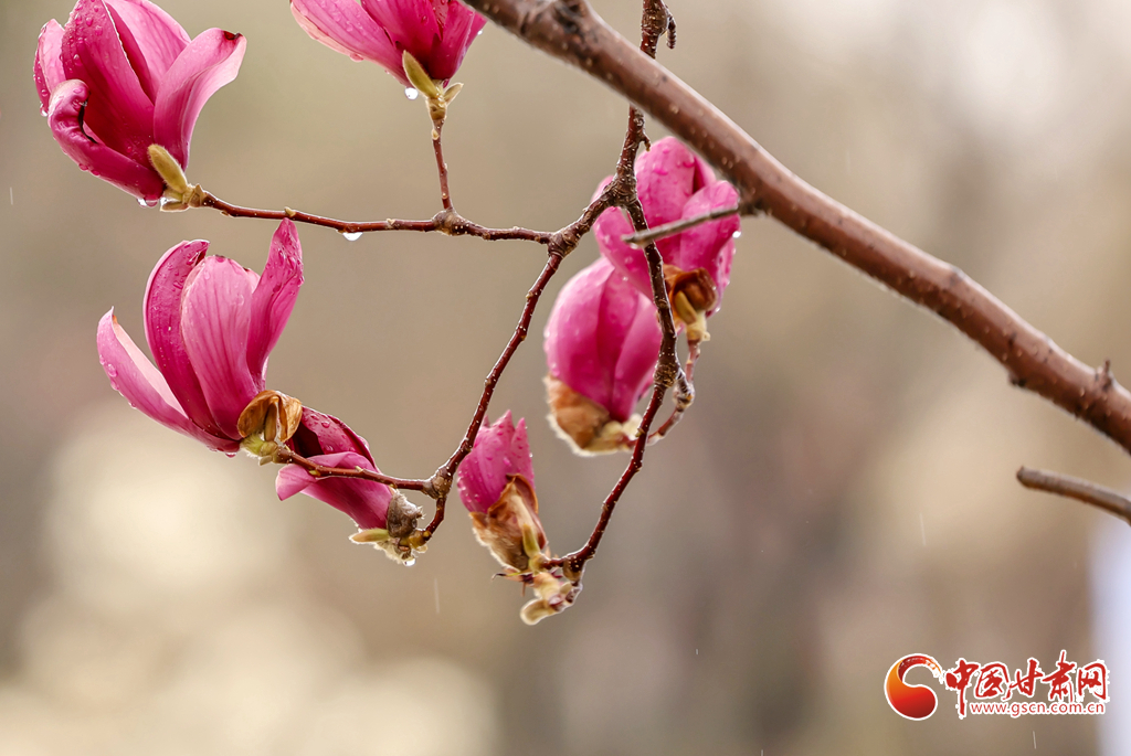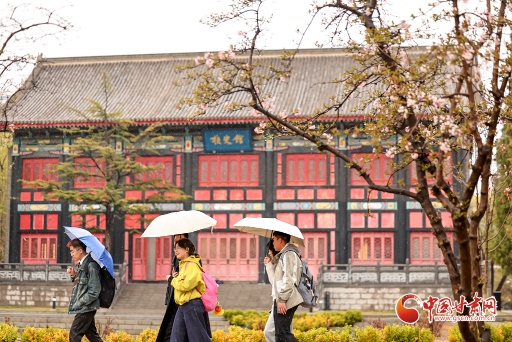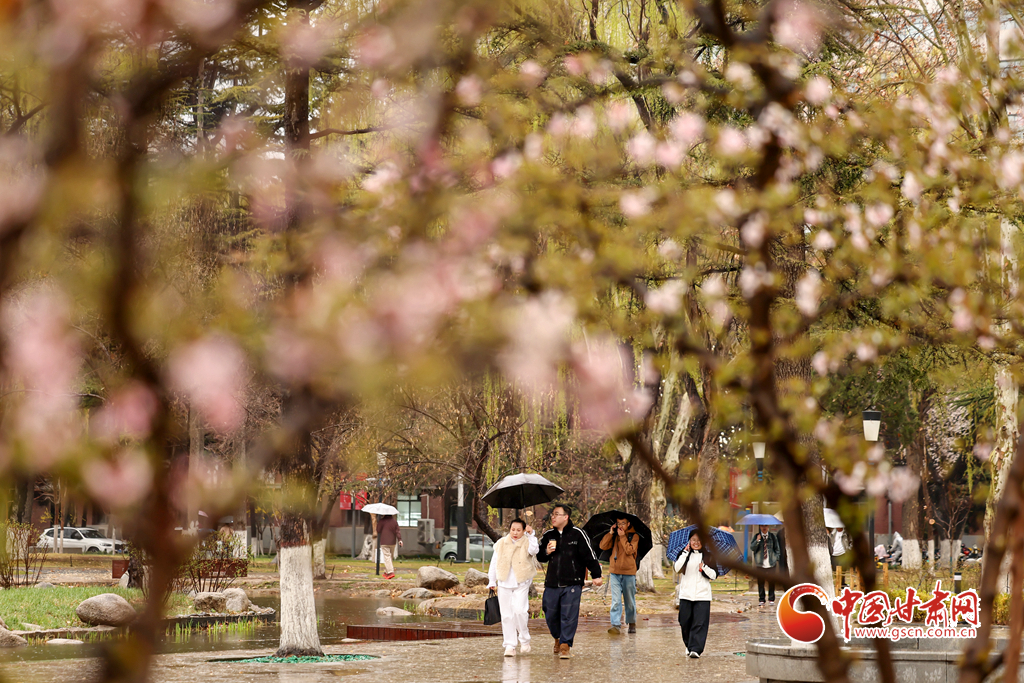 3月29日,兰州迎来降雨天气。兰州大学校园内细雨绵绵,繁花带露,师生漫步雨中赏花观景,尽享春日诗意。温润春雨润泽金城,勾勒出清新雅致的春日画卷。