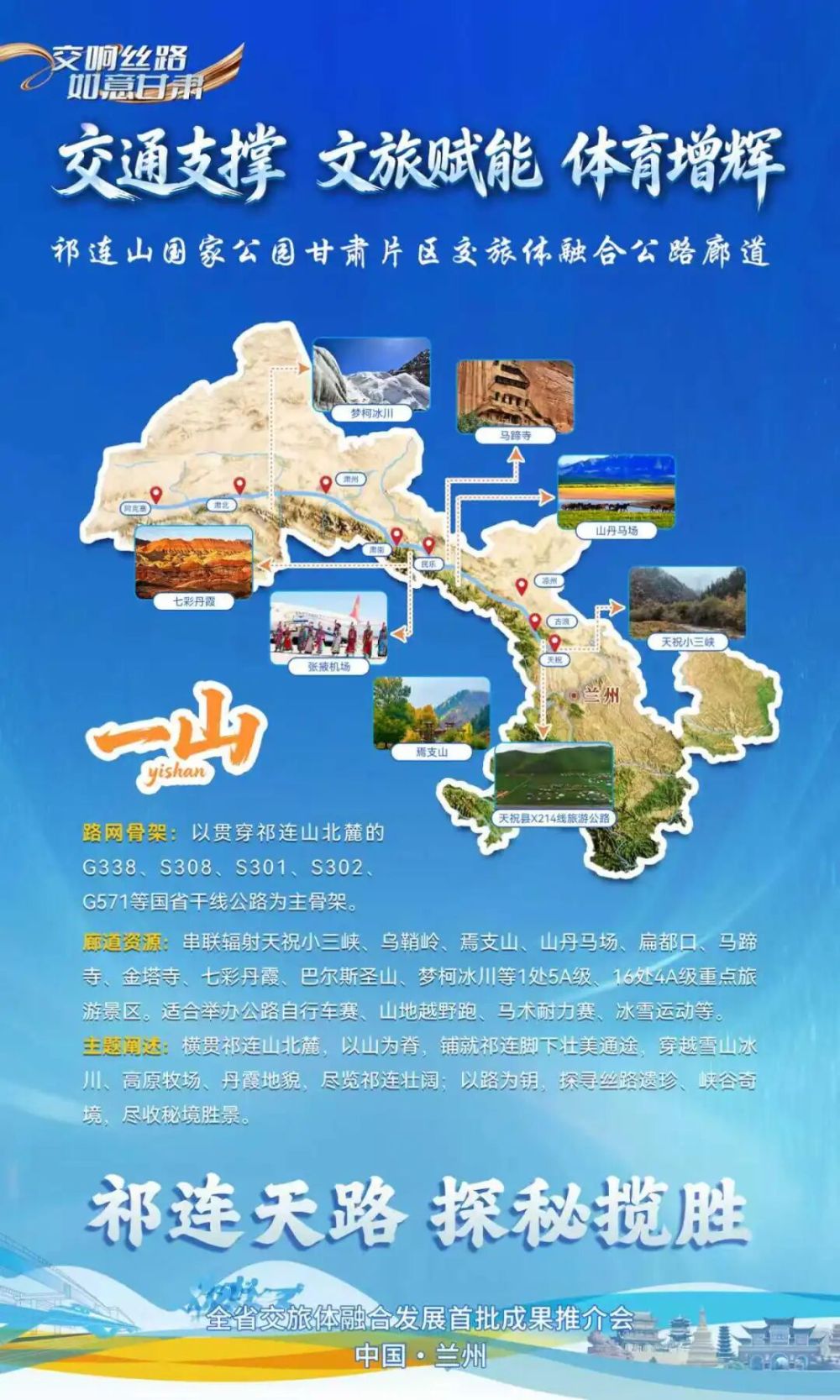 以“祁连天路 探秘揽胜”为主题,打造祁连山国家公园甘肃片区交旅体融合廊道,即“一山廊道”。