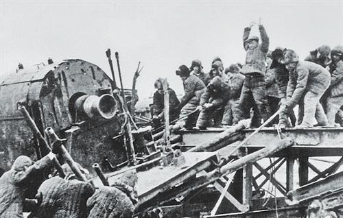 1960年4月,初到大庆的王进喜组织大家用“人拉肩扛”的办法搬运设备。