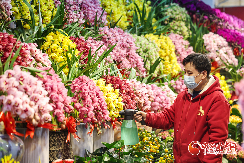 春节临近,兰州市各大花卉市场年宵花迎来销售旺季。1月31日,在城关区芳草园花卉市场,各色蝴蝶兰被摆在店铺C位,缤纷色彩相互交织,与冬青、金桔搭配出满满年味。不少市民专门前来挑选蝴蝶兰,希望将这份美好寓意带回家中,用盛放的鲜花点亮新春,也让年味更加饱满温馨。